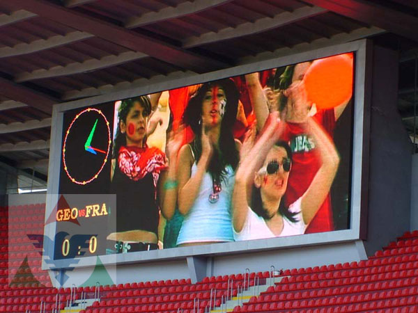 LED顯示屏格魯吉亞項目,采用浙大華泰科技有限公司生產的室外全彩LED顯示屏P10,面積140平方。