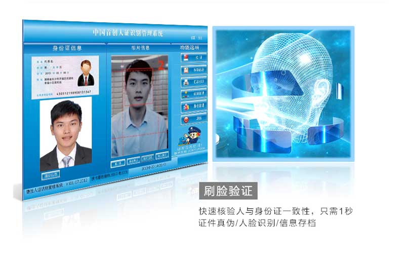 功能:鑒別身份證真假、并判斷身份證是否為本人,準確率98%