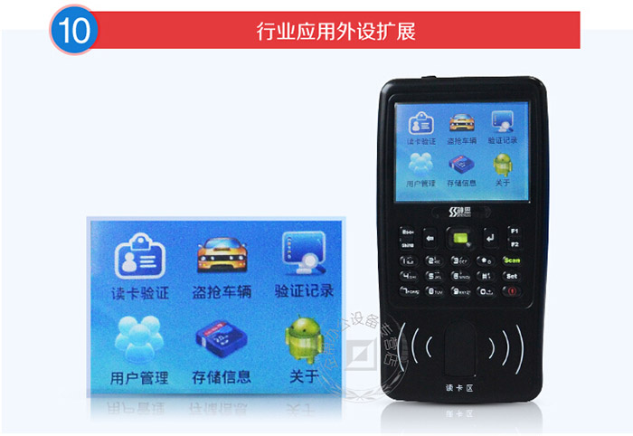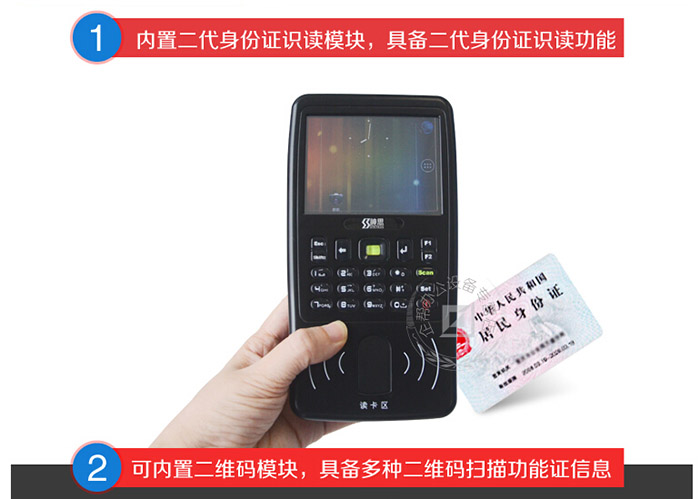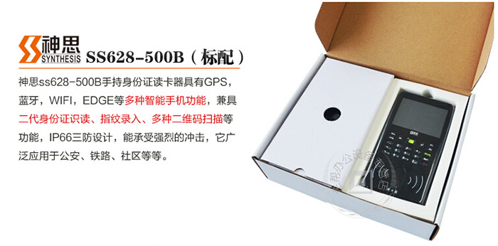 神思ss628-500B手持身份證閱讀器具有GPS,藍牙,WIFI,EDGE等多種智能手機功能,兼具二代身份證信息讀取、指紋錄入、多種二維碼掃描等功能,IP66三防設計,能承受強烈的沖擊,它廣泛應用于公安、鐵路、社區等等。